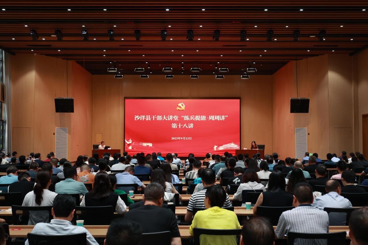 9月13日,沙洋县干部大讲堂暨“练兵提能·周周讲”第十八讲在荆门乡村振兴学院开讲,来自72个县直单位和各个镇(区)共260人参加学习。